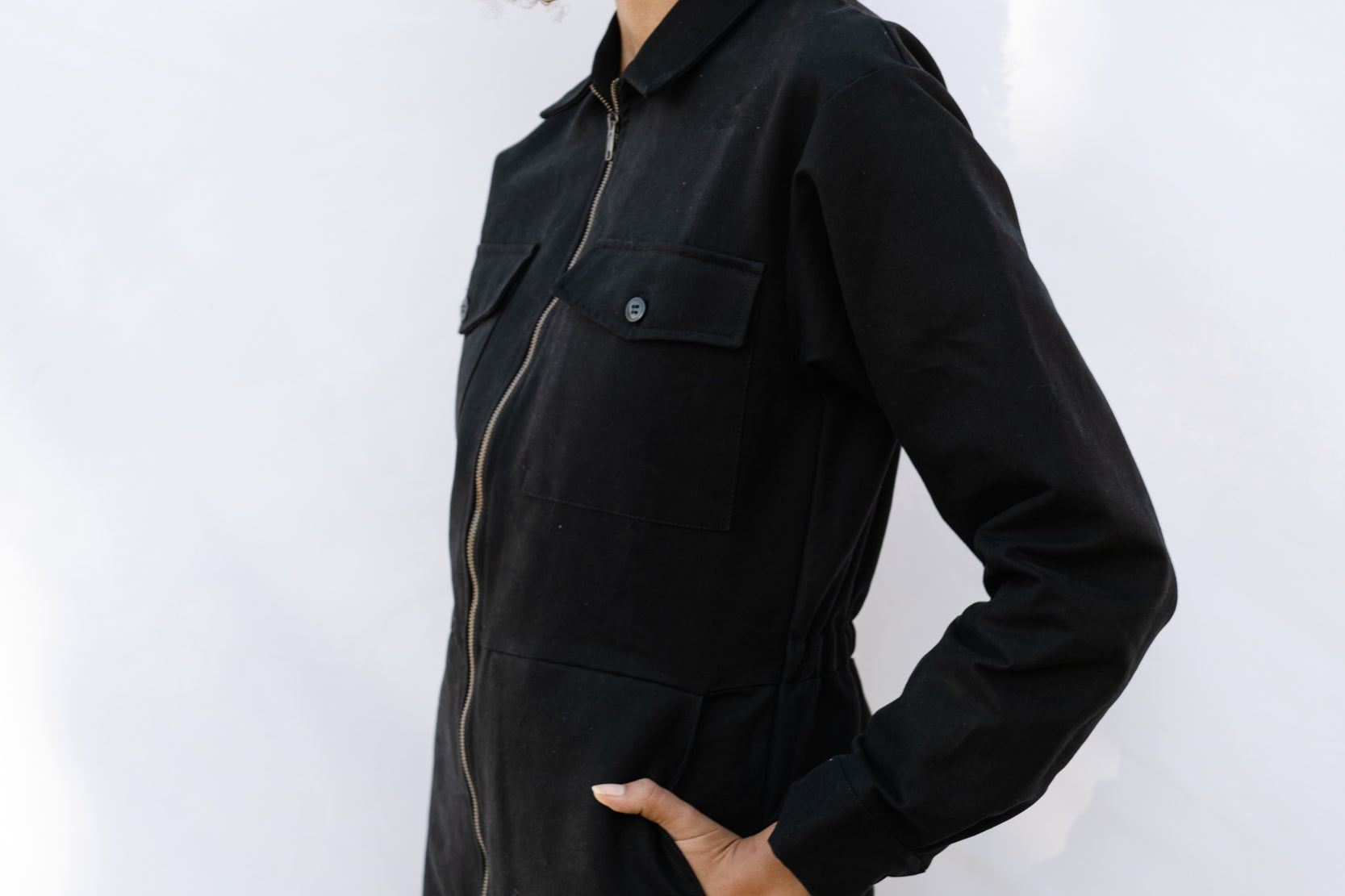 A classic workwear jumpsuit for our creative customers and those who are looking for a comfortable, statement look. Featuring an elastic waist and a unisex cut.