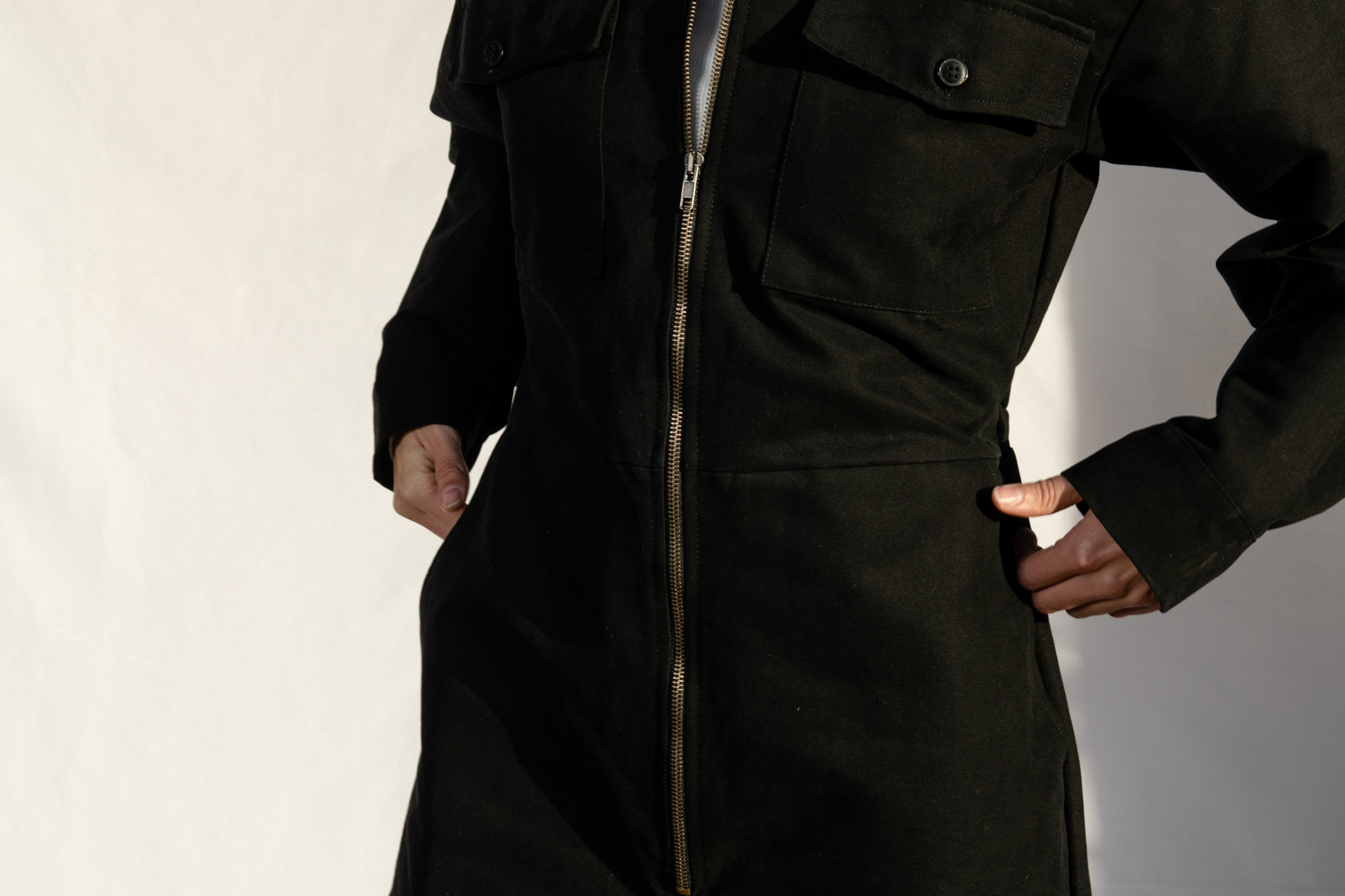 Our classic Cotton fabric has a natural twill structure and robust feel. The textile is sourced and made in Italy. The fabric has a tailored nature with a soft, wearable feel. The composition and tailoring gives each garment a polished and structured look. Cotton is a strong, durable fabric making it easy to take care of.