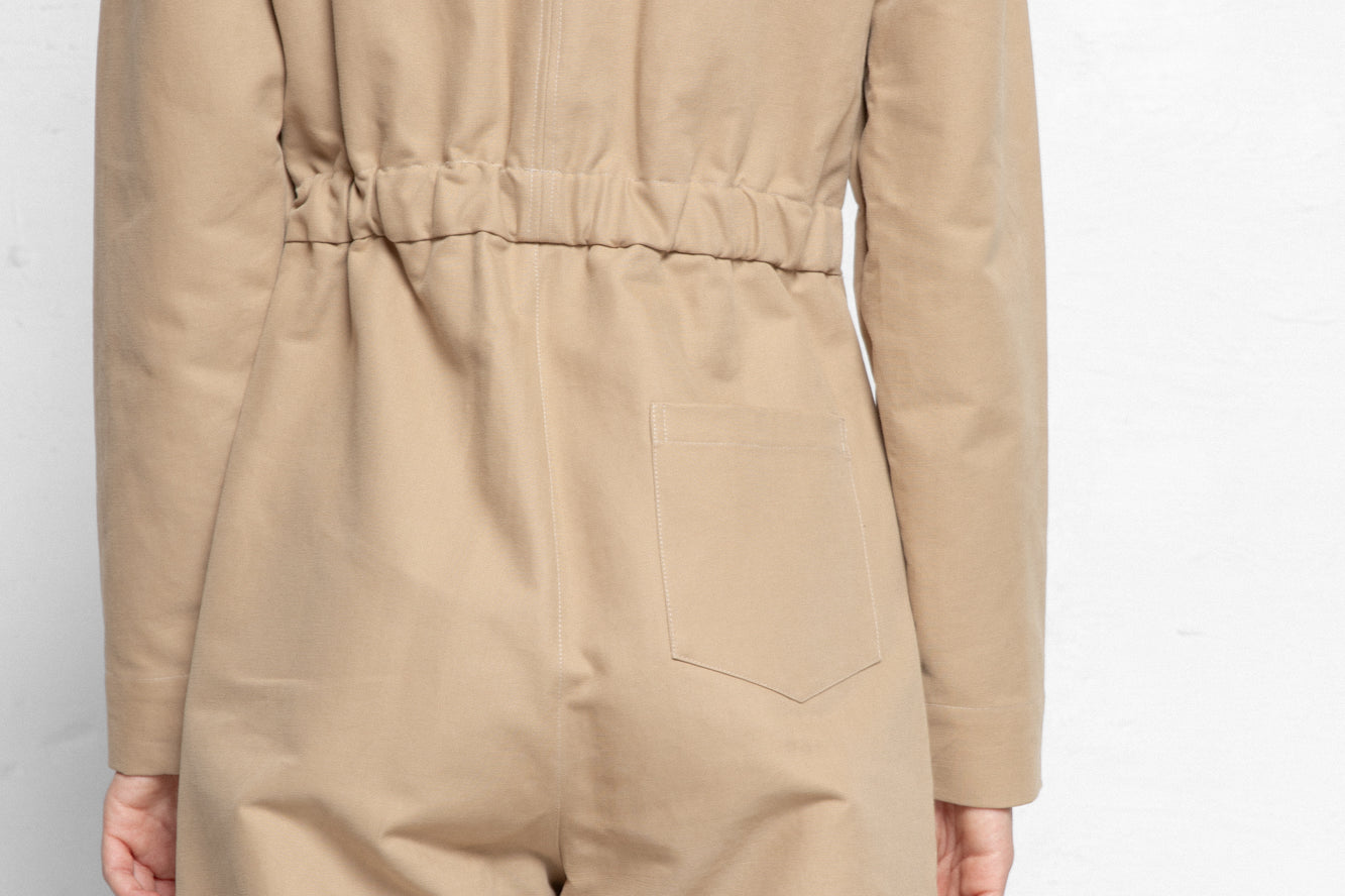 A classic workwear jumpsuit for our creative customers and those who are looking for a comfortable, statement look. Featuring an elastic waist and a unisex cut.