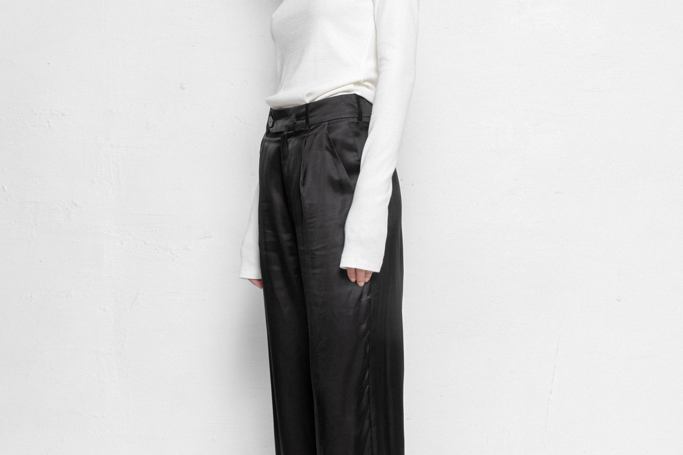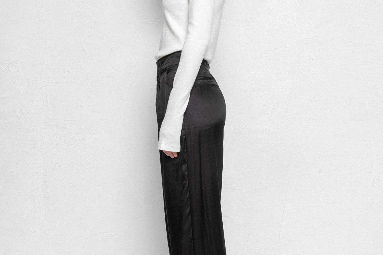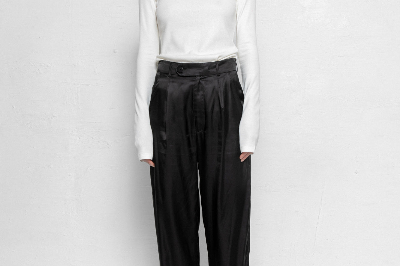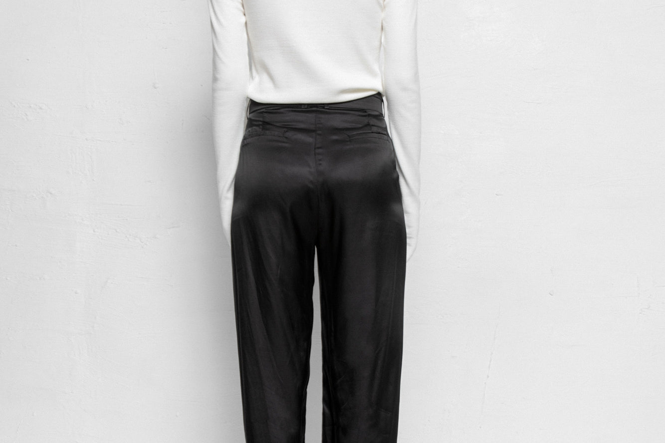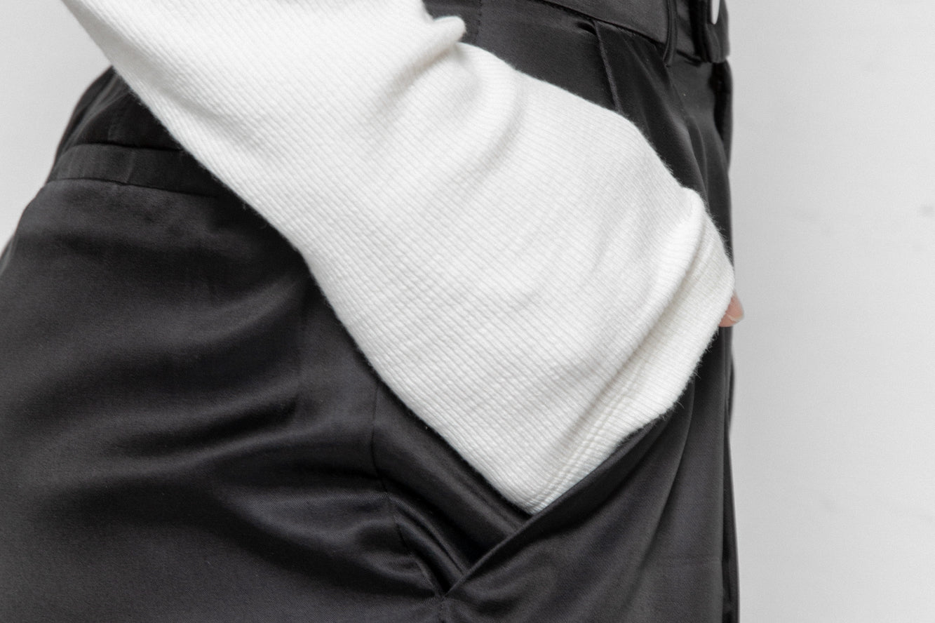 Can Pep Rey looks to the 1970s to craft these suit trousers – the unisex legs are an ideal complement to the expressive dances of the era’s disco music.