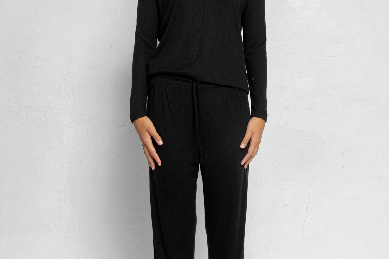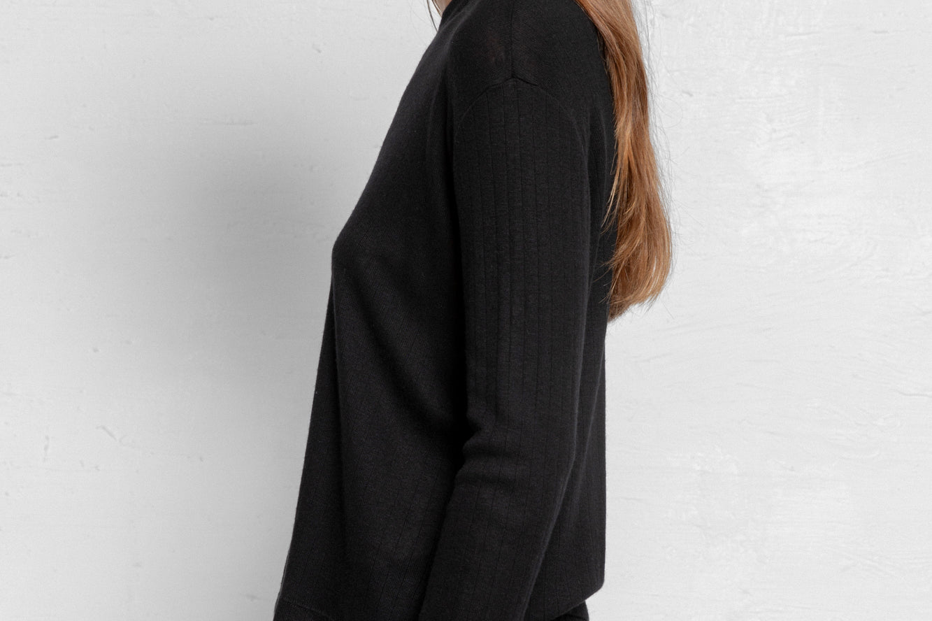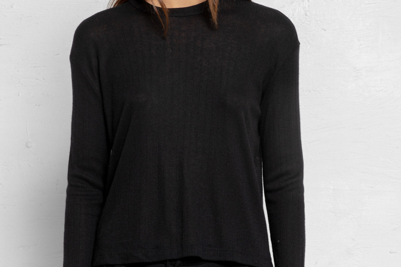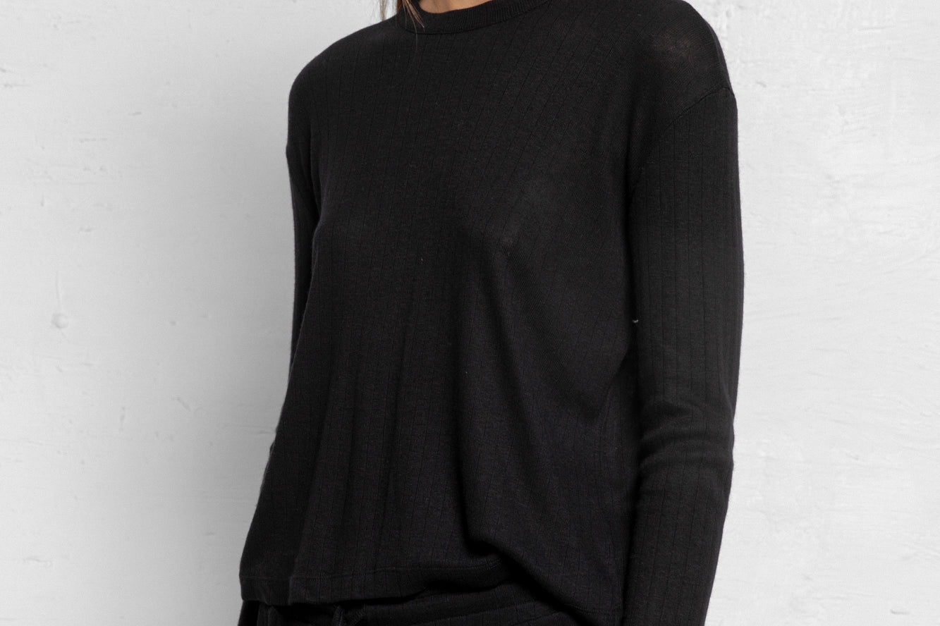 Relaxed long sleeve t-shirt, an elegant wardrobe mainstay. It's made from a light tencel wool blend in an 2x1 rib with a crew neckline and subtly dropped shoulders.