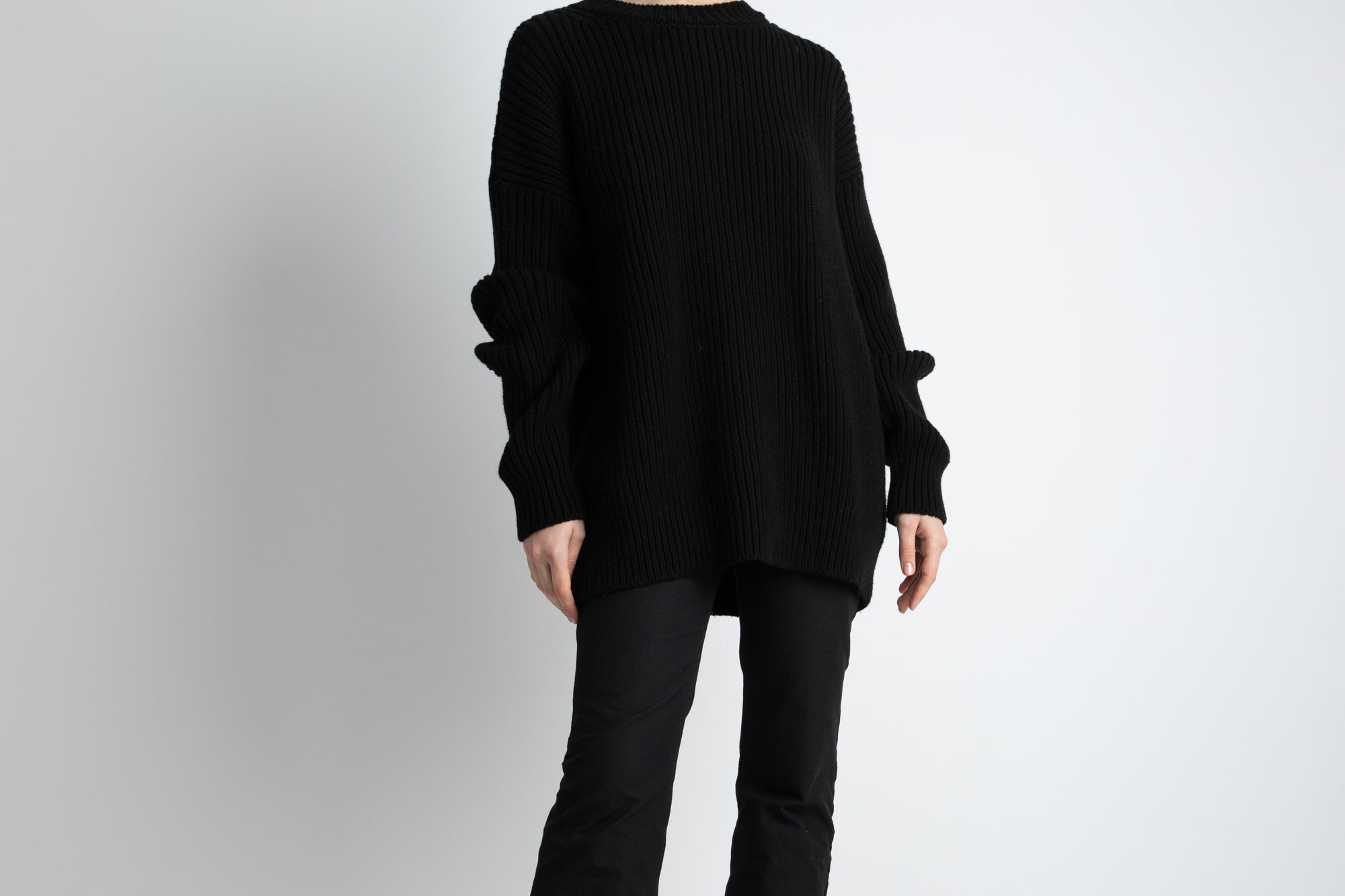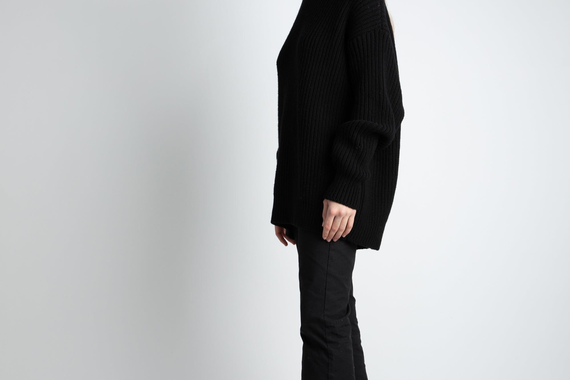 Oversized crew-neck chunky fine virgin wool pullover. It's made in Belgium from wool with a crew neck and raglan sleeves, then framed with ribbed edges.