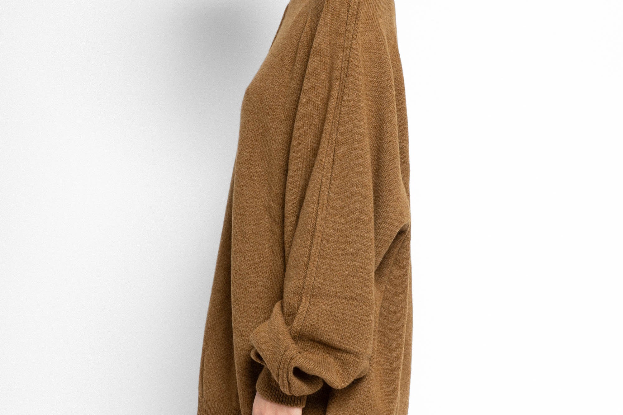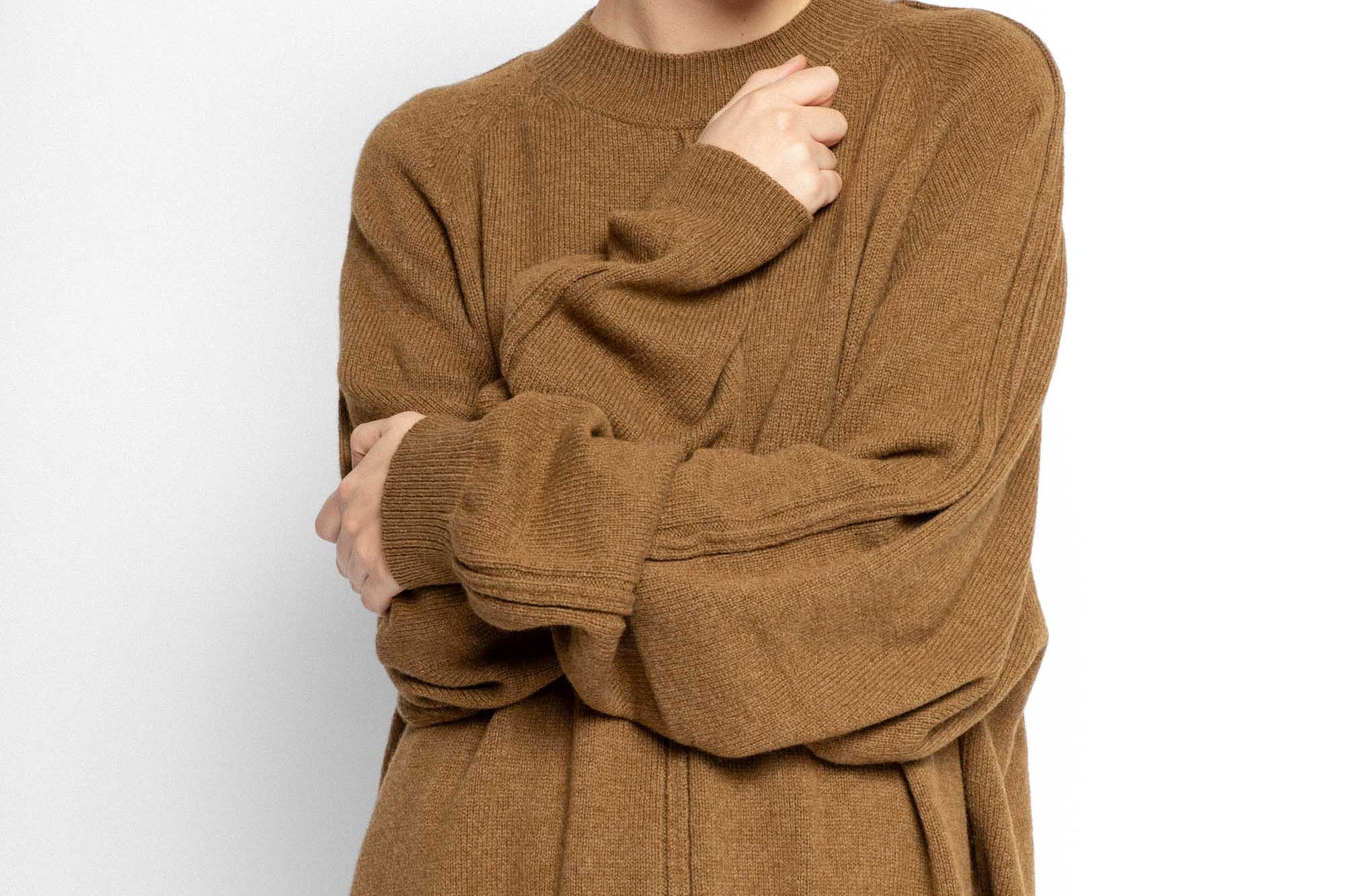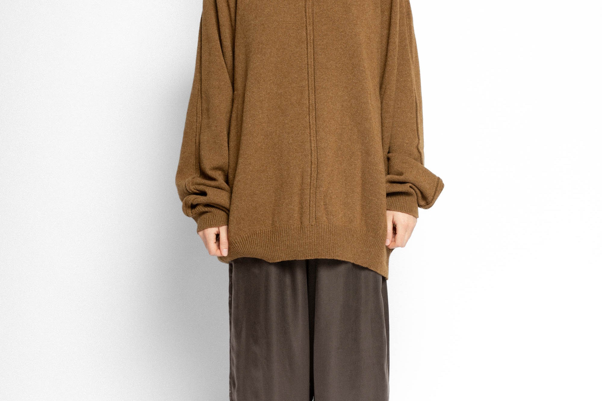 The Serge Pullover is a unisex fit. Lightweight, warming knit made from a Cashmere and Virgin Wool yarn. Raglan sleeves, ribbed trims and a front seam detail and high neckline. Luxurious, comfortable knitwear to keep you cozy over the colder months.