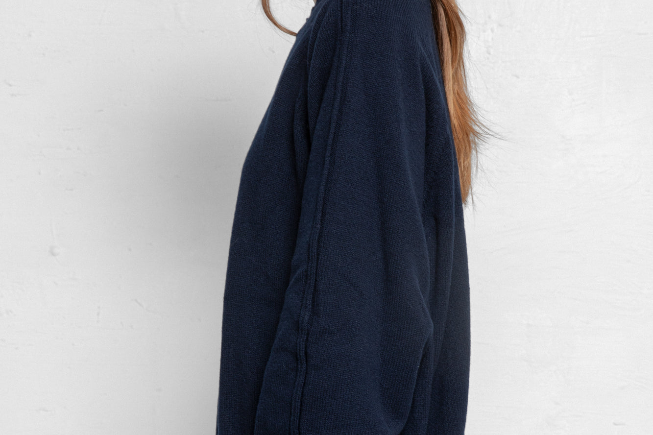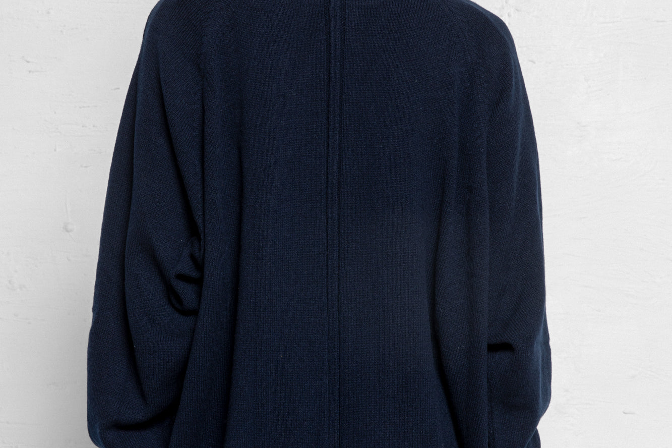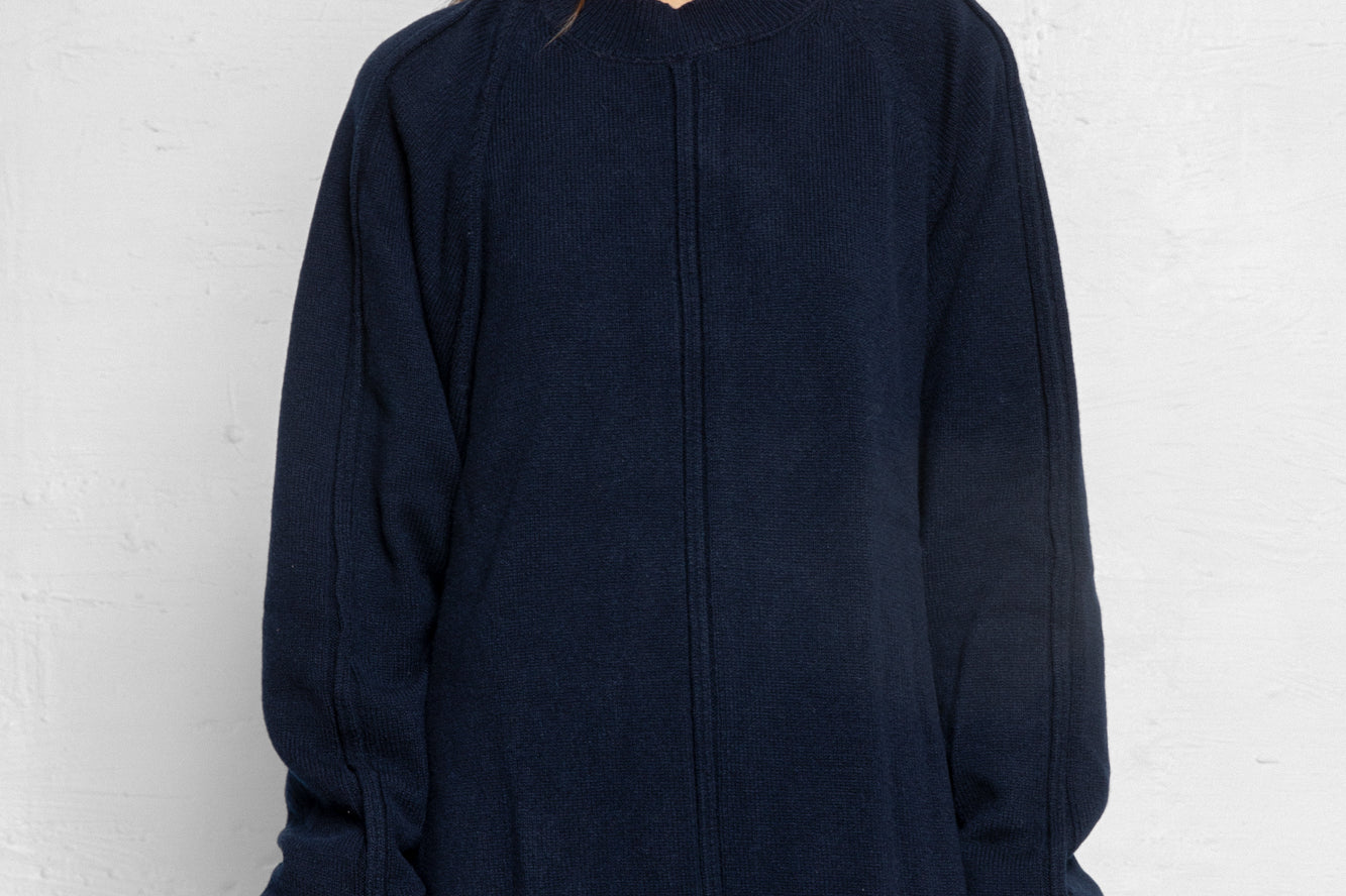 The Serge Pullover is a unisex fit. Lightweight, warming knit made from a Cashmere and Virgin Wool yarn. Raglan sleeves, ribbed trims and a front seam detail and high neckline. Luxurious, comfortable knitwear to keep you cozy over the colder months.