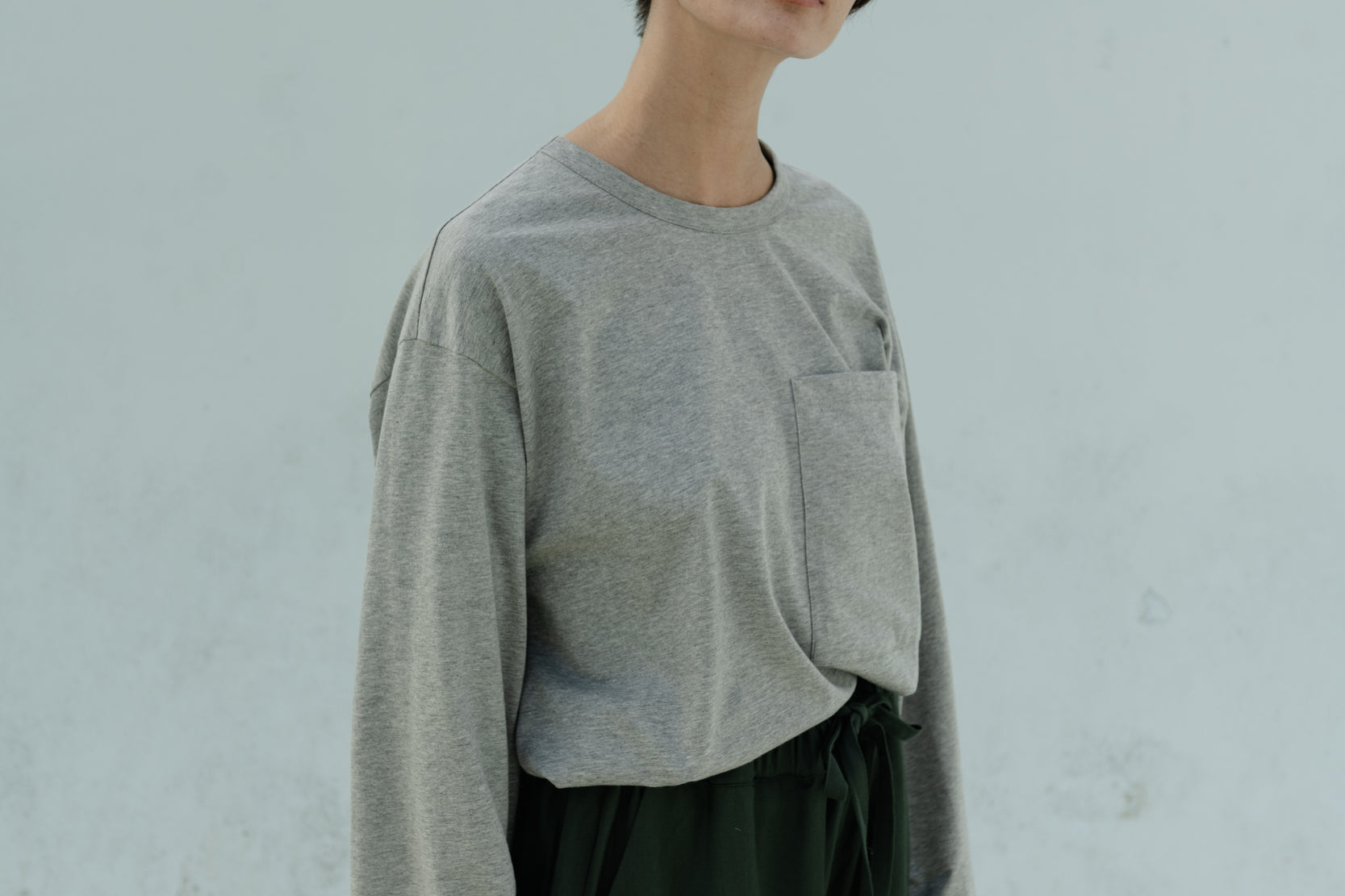 Classic Long sleeve Unisex T-shirt made in 100% Italian Organic Cotton GOTS certified. Oversized, comfortable fit with a crew neckline. Front pocket detail.