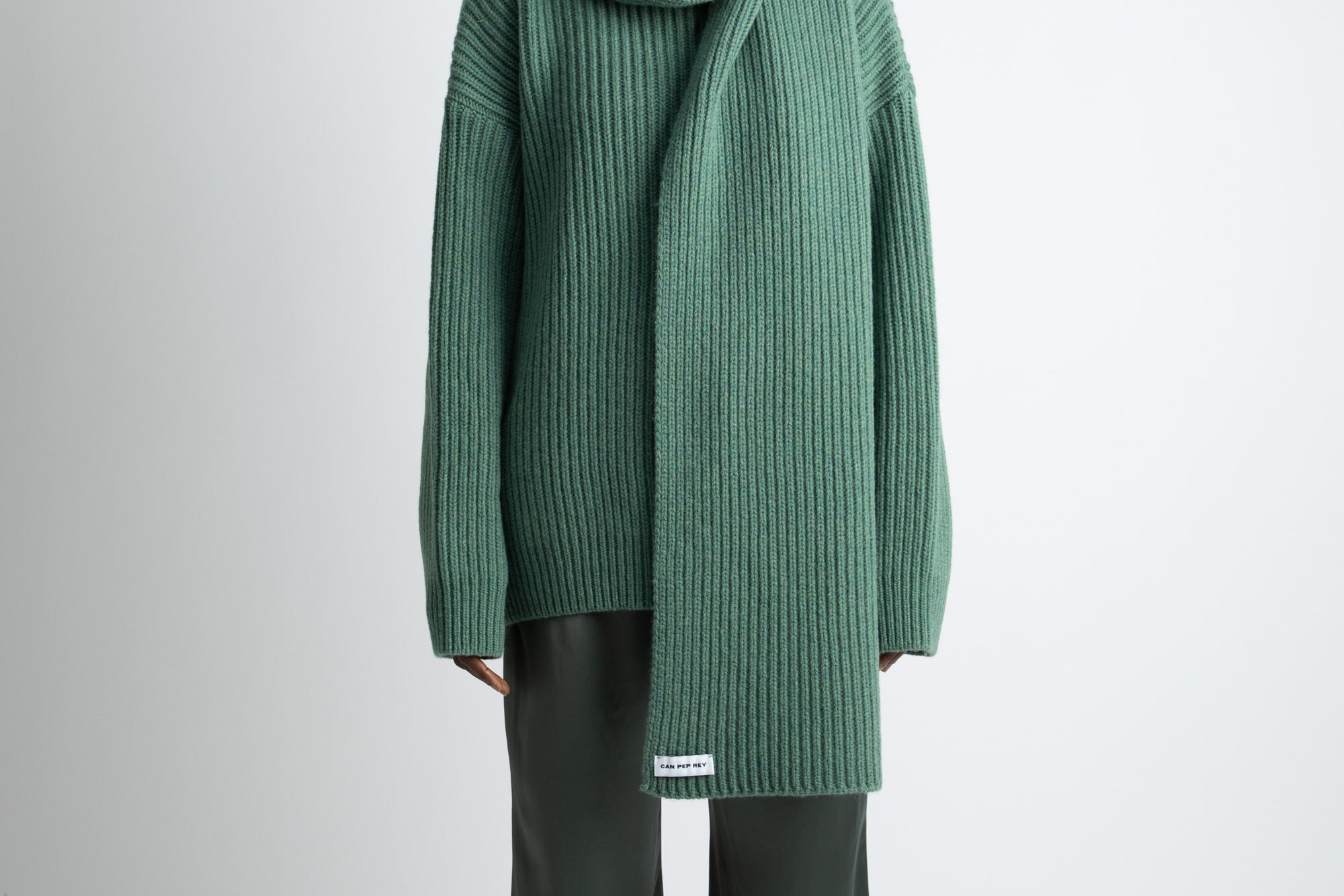 Oversized crew-neck chunky fine virgin wool pullover. It's made in Belgium from wool with a crew neck and raglan sleeves, then framed with ribbed edges.